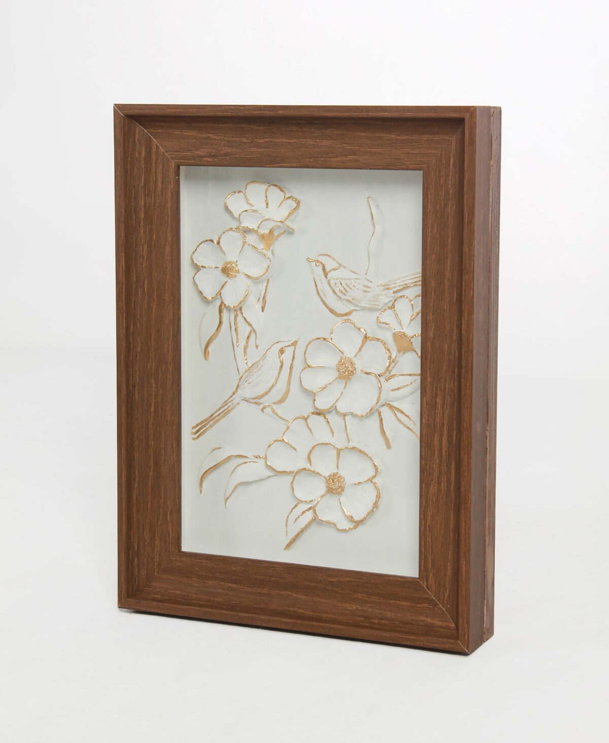 Esittelyssä Nature’s Serenade Patina Floral Wall Art, seesteinen kuvaus luonnon harmoniasta. Kukkien ja lintujen herkkä tanssi, joka on vangittu tähän upeaan teokseen, tuo rauhoittavaa tunnelmaa kotiisi. Rikkaaseen puukehykseen koteloituna se huokuu hienostunutta eleganssia. Tämä patinoitunut taideteos tuo hienovaraisilla sävyillään ja lempeillä ääriviivoillaan ajattoman kauneuden tilaan. Käsityönä valmistetut yksityiskohdat kukoistavat kankaalla ja tarjoavat visuaalisen runon rauhallisuudesta, joka täydentää mitä tahansa huonetta.